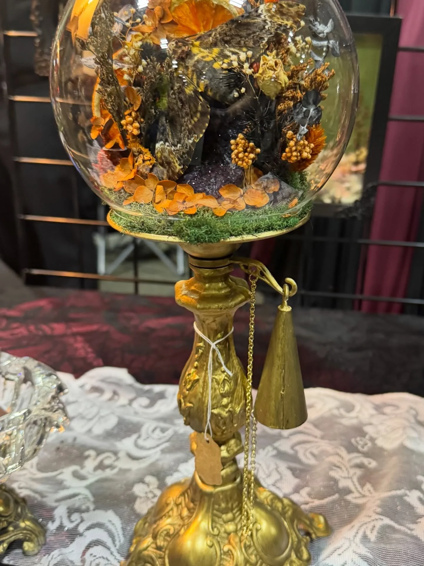 Beautiful Ball Python in clear globe resting on vintage base. Globe with base measures 8"H x 8"W. This is the perfect addition to any home and for any reptile lover.